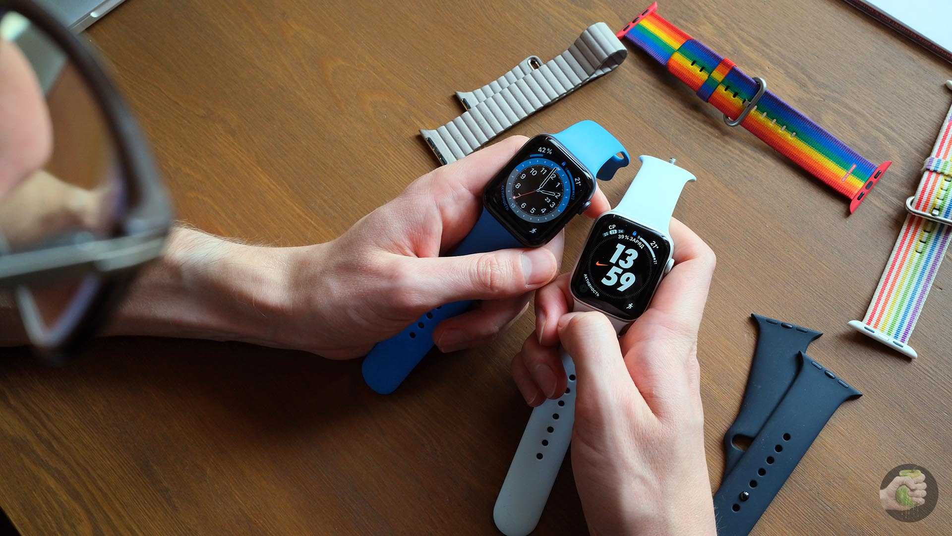 Слева Apple Watch Series 6, справа — Series 4. Фото: Александр Побыванец / Wylsacom Media