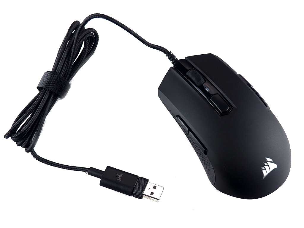 Logitech Corsair M55 RGB PRO: вид спереди и вид сзади |