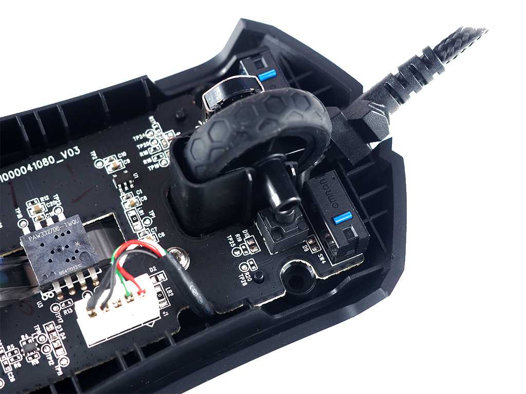Внутри делают свою работу известные переключатели Omron и оптический сенсор PMW3360. К сожалению, из-за особенностей формы данная модель подходит только для правшей. В качестве положительного момента отметим, что подходит она и для геймеров с большими ладонями.