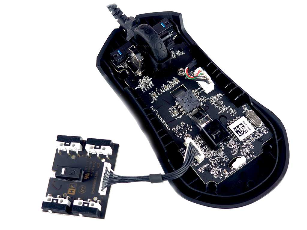 Как всегда, внутренняя пайка радует аккуратностью и наличием переключателей OMRON D2FC-F-7N(50M) на главных кнопкахс ресурсом работы до 50 миллионов нажатий. Во время нажатия слышен четкий, чуть приглушенный щелчок. Боковые кнопки и DPI реализованы на базе переключателей JG.