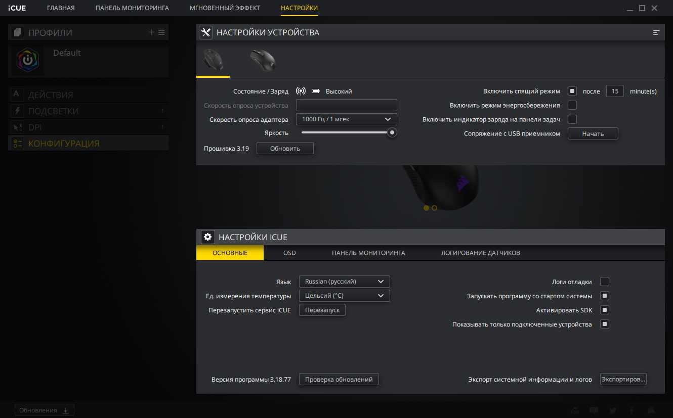 Для полноценного управления всеми возможностями игровой периферии Corsair потребуется установить приложение Corsair iCUE с официального сайта производителя. Это приложение позволяет настроить подсветку, функции дополнительных клавиш, задать макросы и изменить параметры работы устройств ввода. Настроить мышь и клавиатуру можно в едином приложении, что очень удобно.
