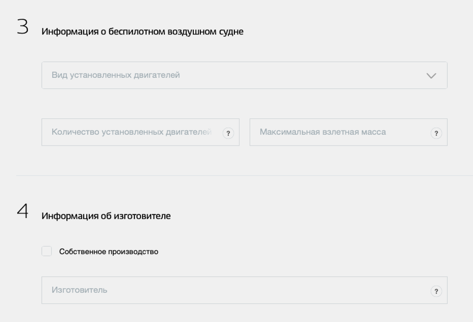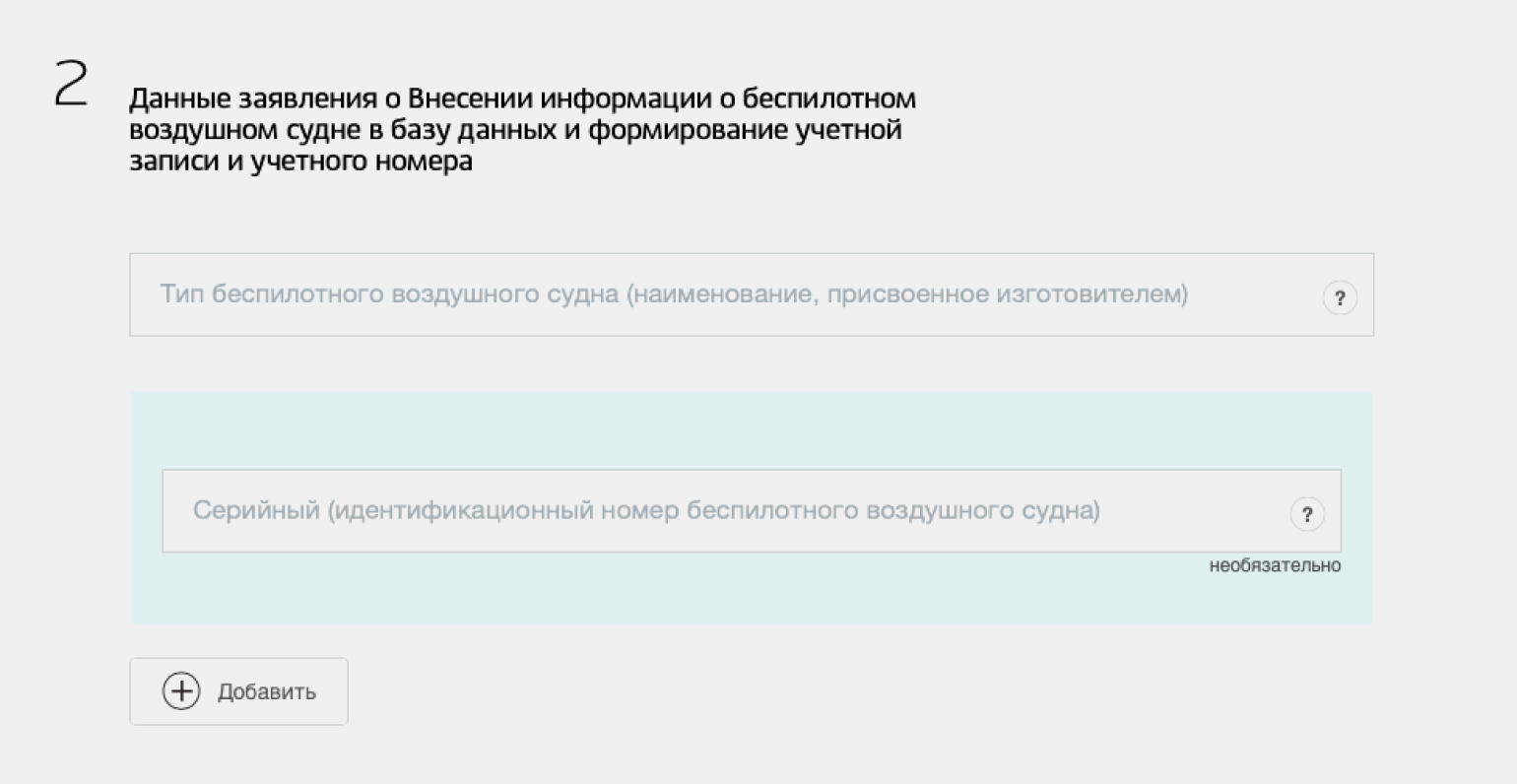 Шаг 2. Перейдите на страницу «Внесение информации о беспилотном воздушном судне».