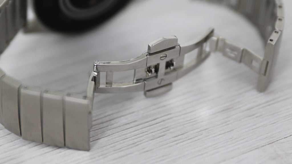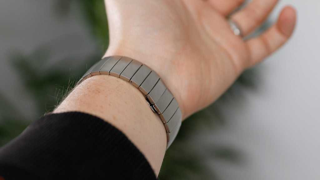 Two thin lugs extend out above and below the watch’s body, leading to a metal linked band which fastens neatly with an elegant butterfly clasp that when closed, gives the strap a seamless appearance. It came oversized for my wrists but wasn’t too tricky to resize after knocking a few links out, and depending on the strap design you opt for, you might only have to contend with a standard notched buckle instead.