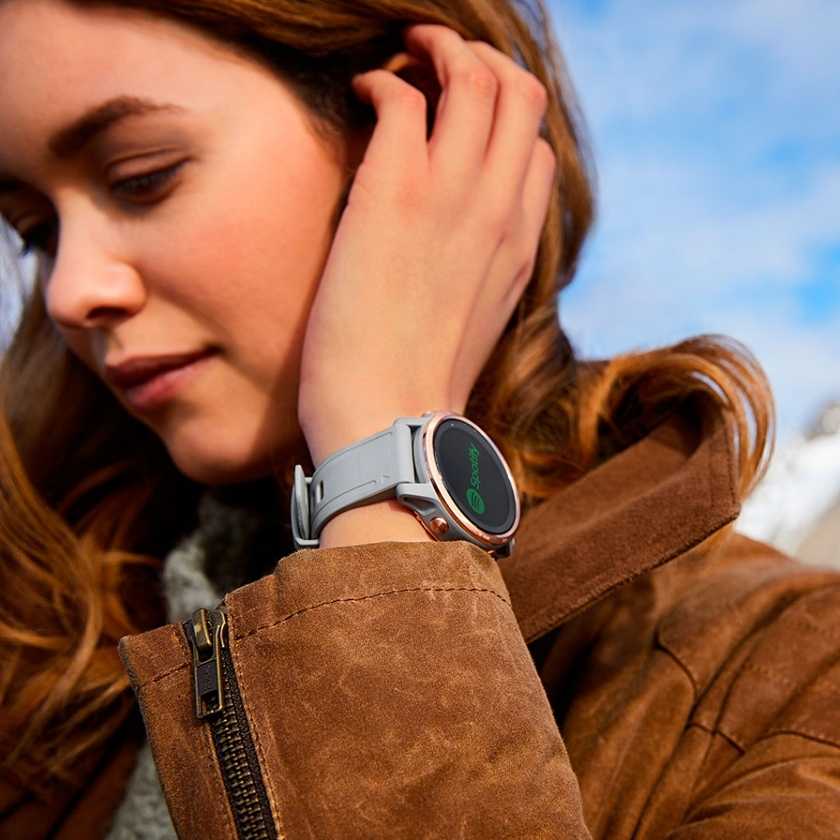 Это означает две вещи: во-первых, вы можете слушать музыку на ходу без смартфона. Во-вторых, умные часы не способны воспроизводить музыку сами по себе, а требуют внешнего устройства (например, наушников). Fenix 7S издает звуки только во время тренировки. Также нет функции громкой связи: телефонные звонки можно принимать или отклонять только с помощью одних умных часов. С другой стороны, вы можете реагировать на входящие сообщения чата заранее сформулированным ответом.