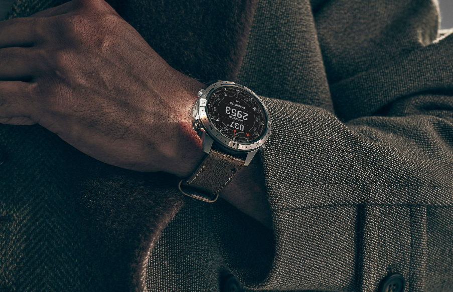 Все Garmin Marq имеют общую базовую конструкцию и используемые материалы, но дизайн у каждой линейки уникальный, можно сказать, особенный. Marq Adventurer также получили титановый корпус и сапфировое стекло поверх трансфлективного дисплея Memory-in-Pixel (MIP). Экран настраивается и модифицируется в соответствии с потребностями предполагаемого владельца.