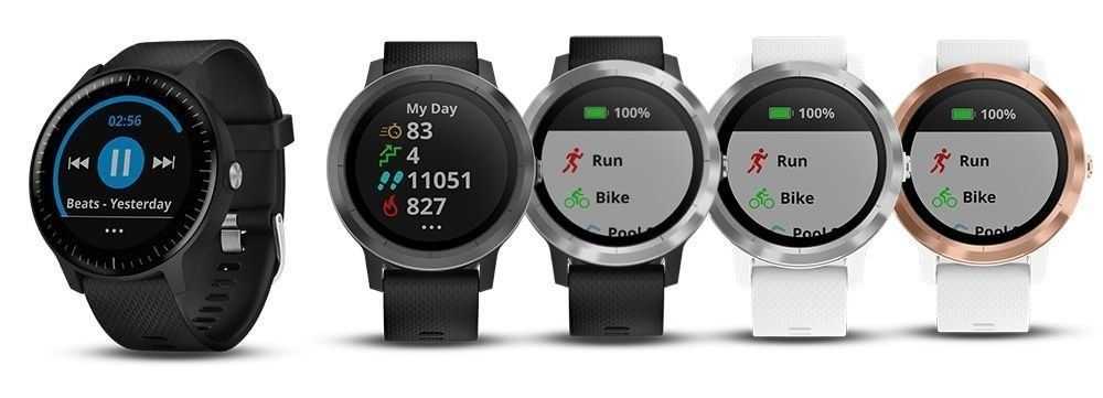 GARMIN Vivoactive 3 существуют в нескольких цветах: чёрный, серебряный и розовое золото.