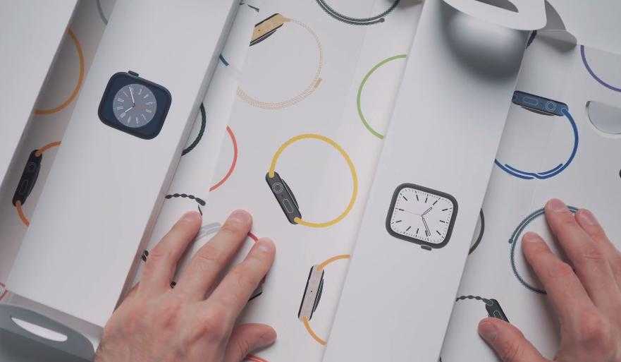 Внутри коробки тоже все, как в стиле дизайна Купертино: и разноцветный принт на обратной стороне обложки, и даже объемное изображение самих часов на коробке.