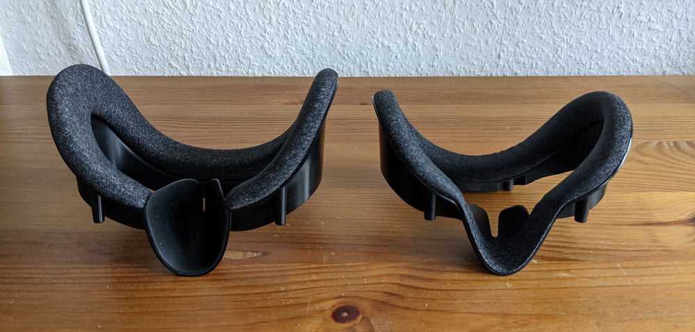 The HP Reverb G2’s face pad (left) tapers more sharply, so it doesn’t accommodate my face as well as the Valve Index’s (right). Both are easy to remove and comfortable against the skin. | Image: MIXED