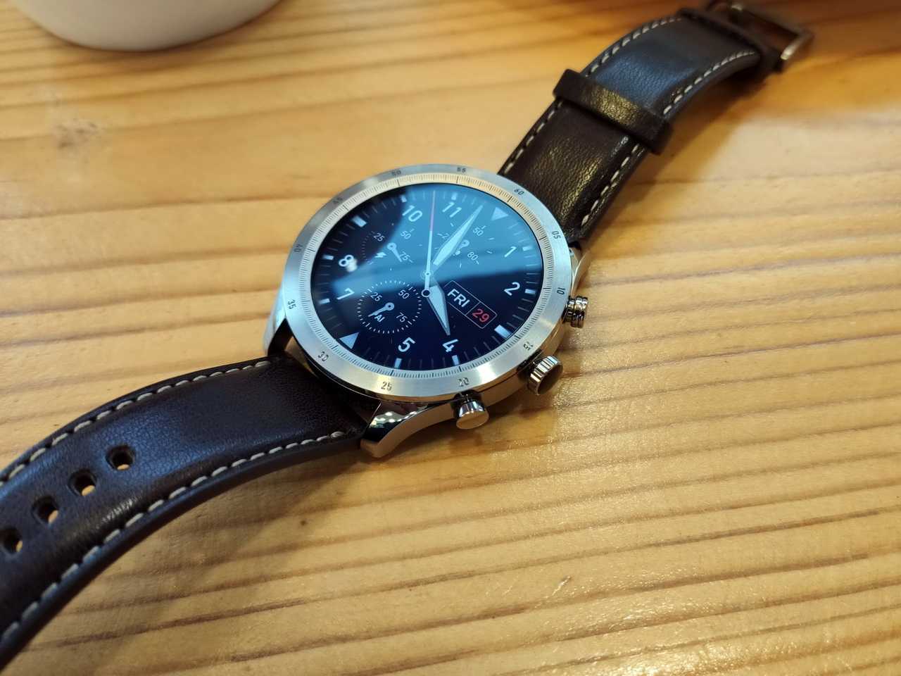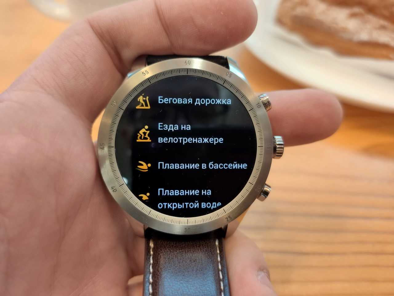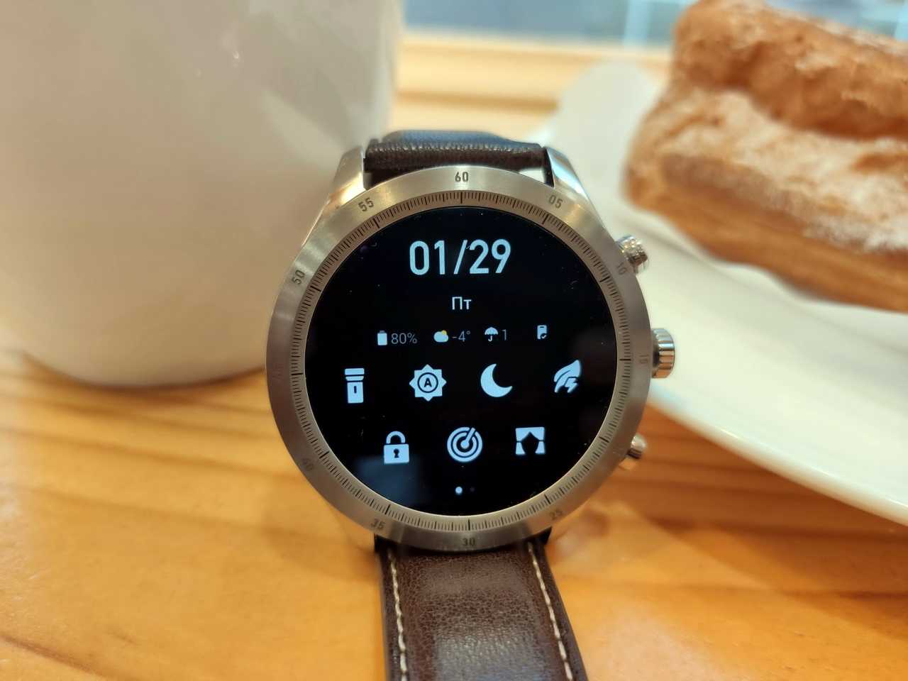 У прошлых часов от Zepp ремешок был весьма низкого качества, теперь производитель исправил проблему. Прямо из коробки мы получаем коричневый кожаный ремешок, который идеально подходит стилю этих умных часов. На руке такая комбинация смотрится великолепно.