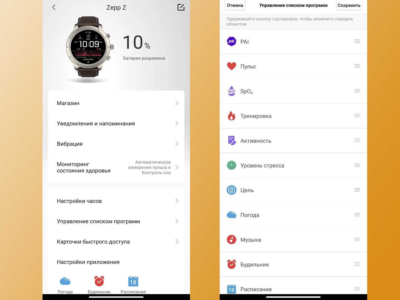 - Приложения: Zepp