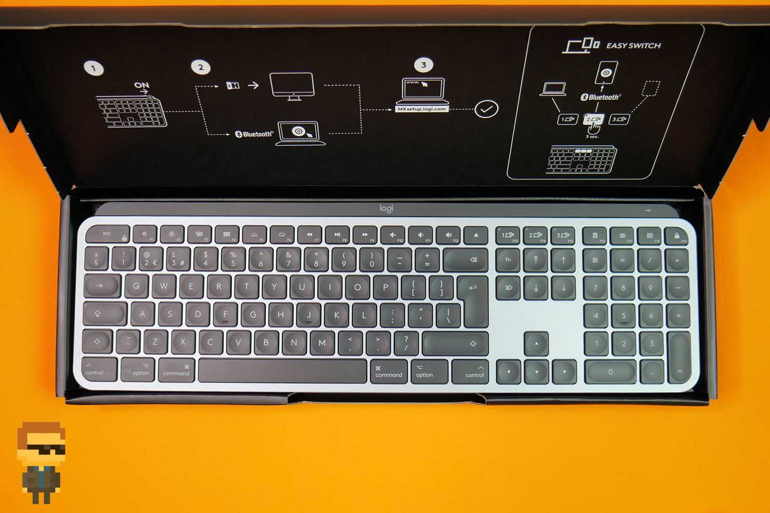 Клавиатура My Blast поставляется с желтой клавиатурой, подчеркнутой множеством круглых плавающих черных клавиш с желтыми глифами. Как и MX Keys Mini , клавиатура предназначена для работы как с Mac, так и с ПК. Некоторые модификаторы и специальные клавиши на клавиатуре – Control, Function, Shift, Tab, Caps Lock, Delete, Enter и другие – серые с желтыми глифами.