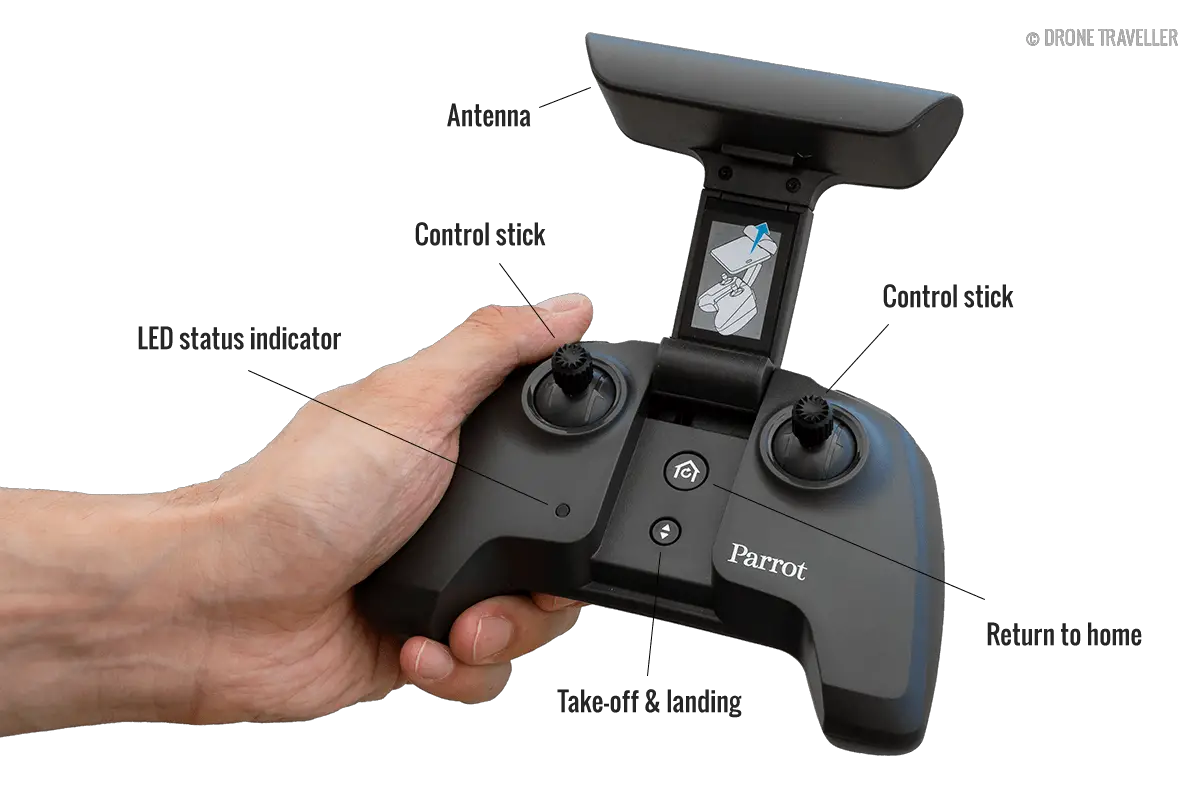 The Parrot Anafi review isn’t completed without talking about the stylish remote controller it comes with. I have reviewed several countless drones and the Parrot Anafi has one of the best looking remote controllers, beating the HS700 Ophelia and Potensic T35. The remote controller is very simple and basic enough that beginners will have an easy time learning how to fly the drone. To activate the remote controller, all you need to do is unfold the mount holder for the phone and push the power button.