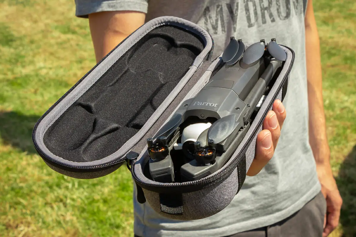 After you have finished your flight, the propeller arms and the Skycontroller have quickly folded again. The Anafi comes in a stylish bag that fits perfectly in a backpack. This allows you to stow the drone and move on after your flight quickly.