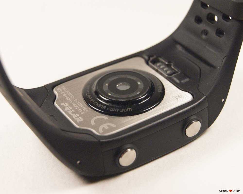 Часы актуальной линейки Polar оборудованы оптическими пульсометрами собственной разработки. Здесь 9 — 10 светодиодов разного цвета, которые просвечивают мягкие ткани запястья и 4 фотоэлемента для регистрации отраженного света. Есть также 4 контакта, которые определяют плотность прижатия часов к руке, для возможности корректировки данных. Таких датчиков нет не одного конкурента.
