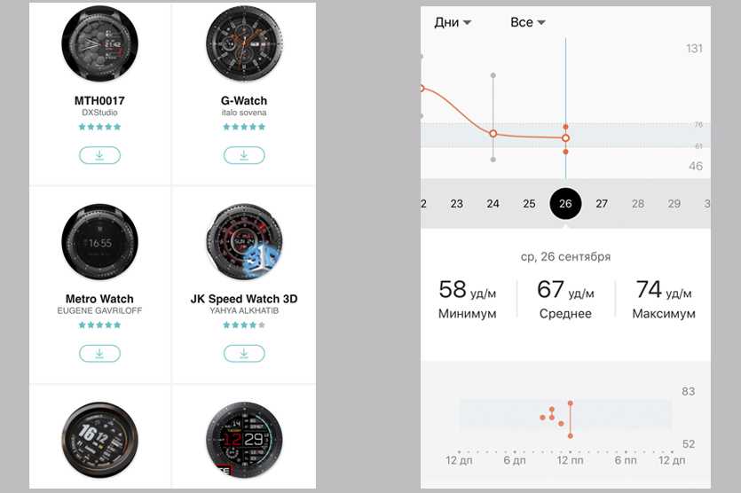 Многие варианты циферблатов обладают возможностью изменения цветового оформления, а также содержат специфические фитнес функции.