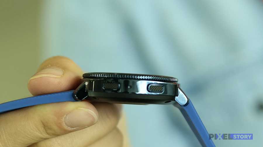 Поворотный ободок (безель) позволяет осуществлять навигацию по часам, есть две клавиши на правой стороне (верхняя – это возврат на один уровень). В корпусе есть пара микрофонов, но для звонков использовать часы нельзя, только для голосовой диктовки.