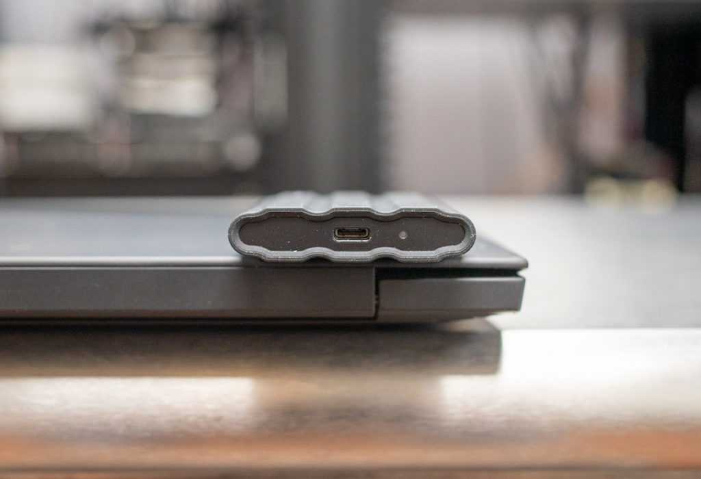 Дополнительный вес не имеет значения с точки зрения транспортабельности и придает T7 Shield хороший вес. На самом деле, я собирался швырнуть его в стену, чтобы проверить ударопрочность. Я этого не сделал, хотя я уронил его с четырех футов на деревянный пол без каких-либо побочных эффектов.