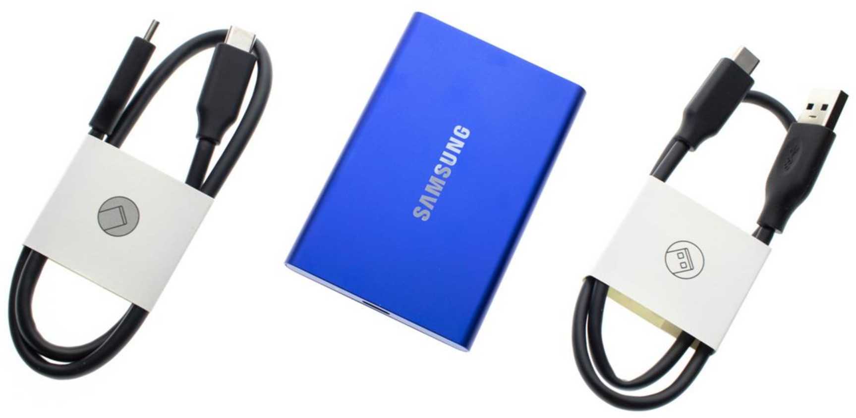 Samsung Portable SSD T7 не имеет считывателя отпечатков пальцев , как в предыдущей модели, но в остальном абсолютный клон. Оба устройства имеют одинаковый профиль размером с кредитную карту и прочный корпус. Его размеры 3,3 на 2,2 дюйма при толщине всего 0,3 дюйма. Оба диска имеют емкость 500 ГБ, 1 ТБ и 2 ТБ с одинаковыми показателями чтения-записи 1050 МБ / с и 1000 МБ / с соответственно.