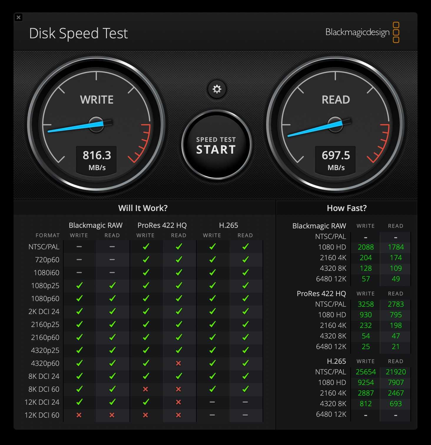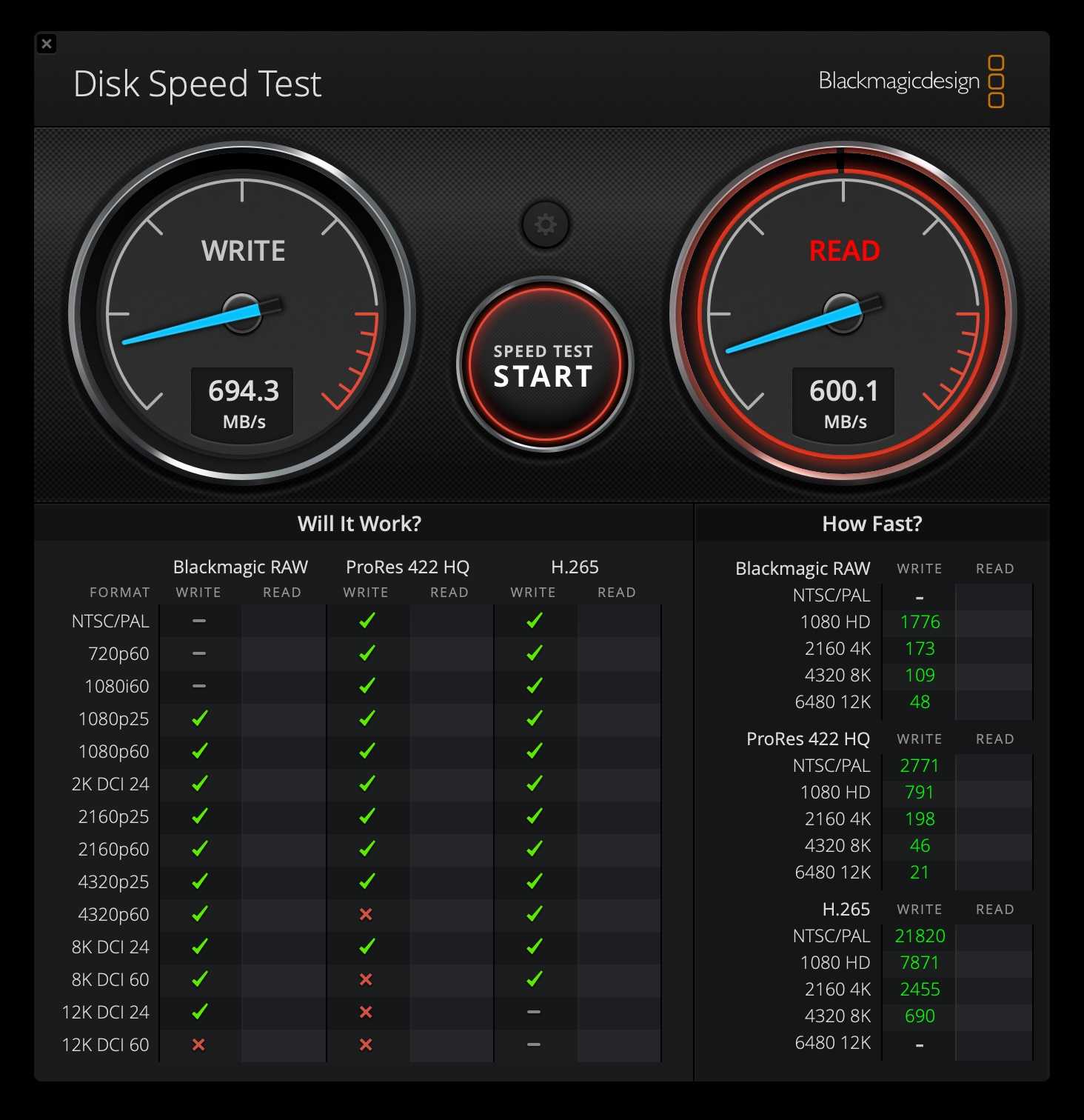 В моем практическом тесте с Samsung T7 Shield я был вполне доволен производительностью. В моем первом тесте я смог передать файл размером около 10 ГБ примерно за 10 секунд, что составляет примерно 8 Гбит/с. В другом тесте я смог передать более крупный файл ~ 150 ГБ за 180 секунд, что составляет примерно 6,7 Гбит / с, что более чем достаточно для рабочих процессов 4K ProRes, и все это без того, чтобы внешний вид диска стал более чем немного теплым. Эти тесты, хотя и не являются научными, дают общее представление о производительности при подключении к Mac Studio или другому компьютеру Mac через USB-C.