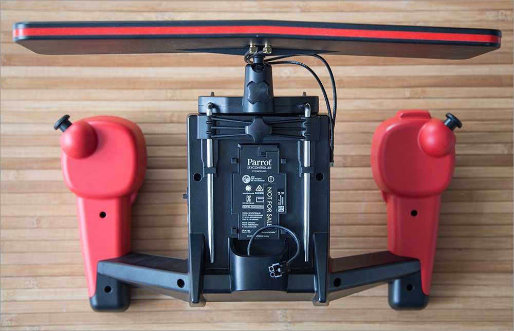 Пульт управления Skycontroller поставляется только в расширенной комплектации. Он позволяет удобно зафиксировать планшет и осуществлять управление с помощью отдельных аппаратных клавиш и двух джойстиков.