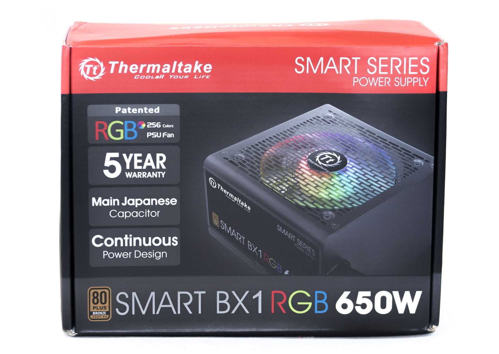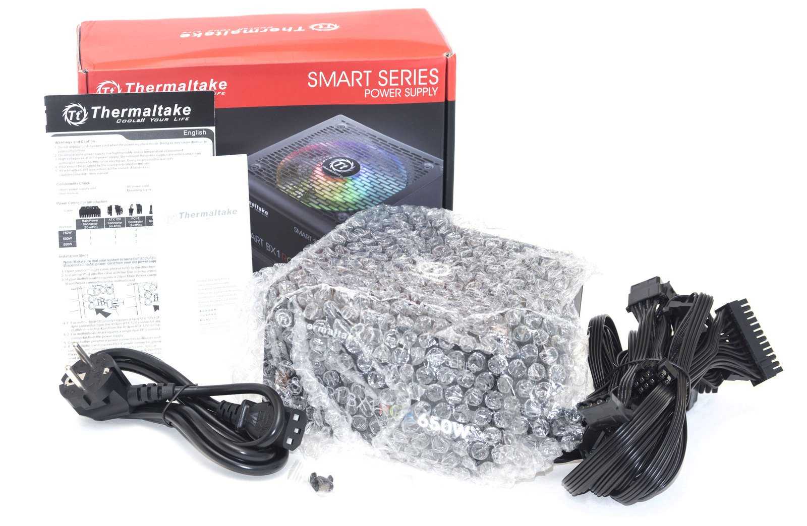 Тестирование блока питания Thermaltake Smart BX1 RGB 650W приводит к неоднозначным выводам. Отличный дизайн, наличие регулируемой RGB-подсветки, использование японского основного конденсатора. Напряжения не проседают ниже номинальных значений и укладываются в стандарт ATX.