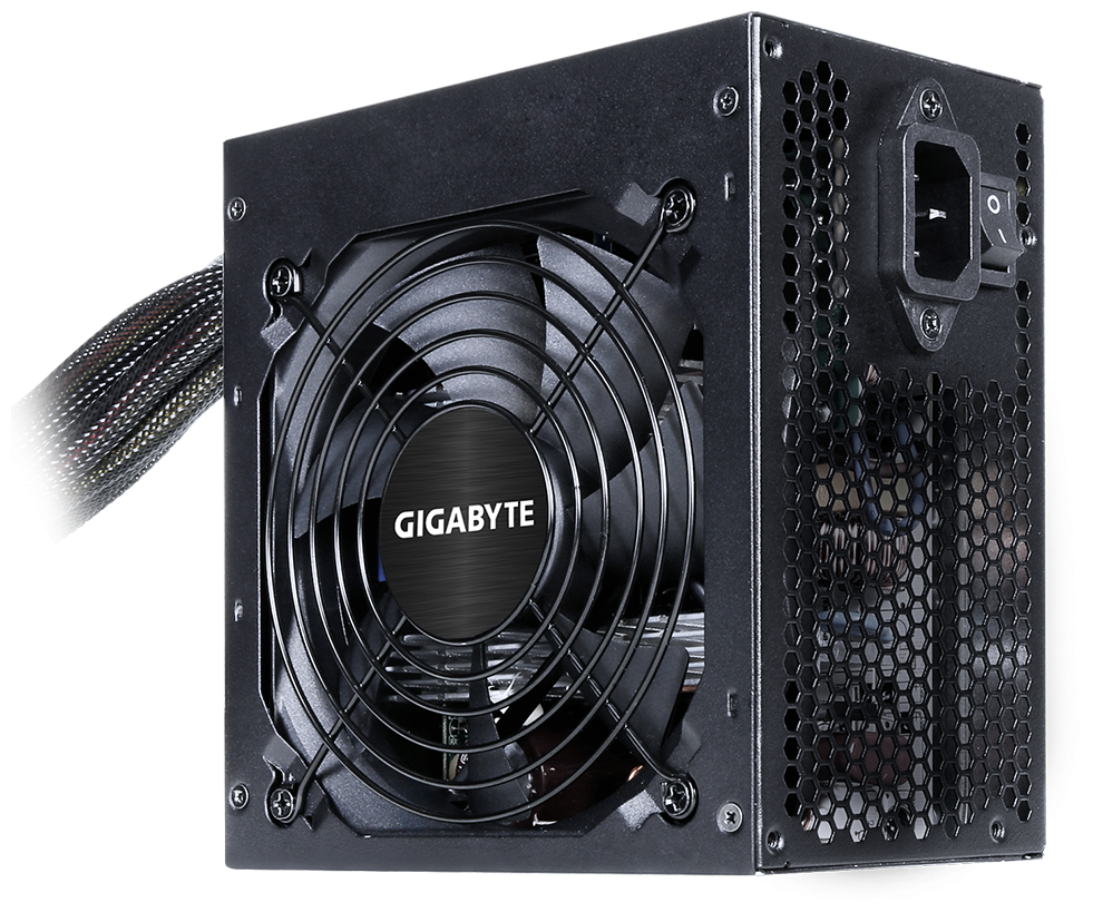 Номинально возможная мощность – 650 ватт, присутствует сертификат, без которого нельзя представить качественный блок. В данном случае устройство прошло сертификацию 80 PLUS Bronze. Инженеры компании GIGABYTE заявляют эффективность, равную 85 процентам, очень немалое значение. Присутствует нормальный активный PFC с практически топовыми значениями сглаживания. Диапазон рабочих напряжений в 100-240 вольт позволит использовать БП без дополнительных сглаживающих устройств даже в квартирах или домах с совсем отвратительным электричеством
