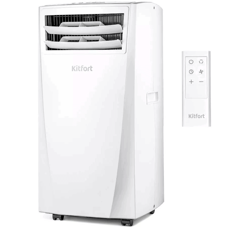 Мобильный кондиционер – один из лучших в своей ценовой категории! Он способен на многое. Охлаждает, осушает и имеет режим вентилятора, имеет 3 скорости работы. В Kitfort КТ-2841 применяется хладагент R290 – экологически безопасный пропан. Работой кондиционера можно управлять с помощью пульта ДУ или панели управления. Kitfort КТ-2841 работает от двух батареек ААА, а для легкого перемещения предусмотрены колесики.