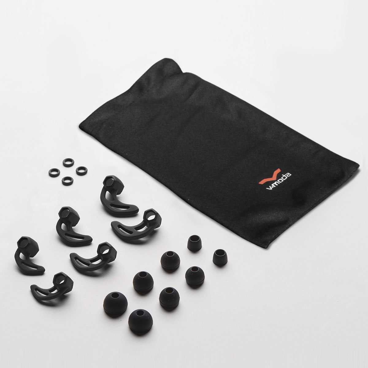 The V-Moda Forza Metallo Wireless Earbuds come in two colors, gunmetal black and white silver. The box includes the earbuds, a set of sport fins that help hold them in your ears while working out, a nice large carrying pouch and a charging cable. You also get four different sizes of earbud inserts for people with extremely small to larger ear canals. The set that came pre-installed fit my ears perfectly.