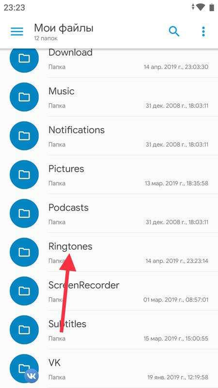 Еще один способ как можно поставить песню на звонок – создать папку «Ringtones» во внутренней памяти телефона при помощи файлового менеджера и поместить в нее скачанный трек, после чего он появится в «Рингтонах».