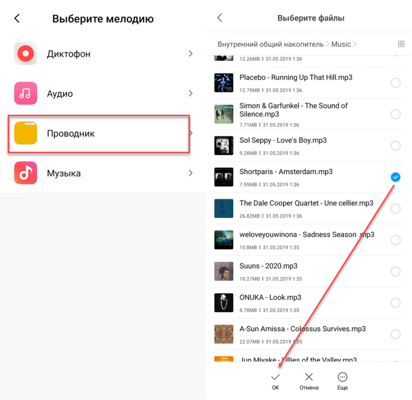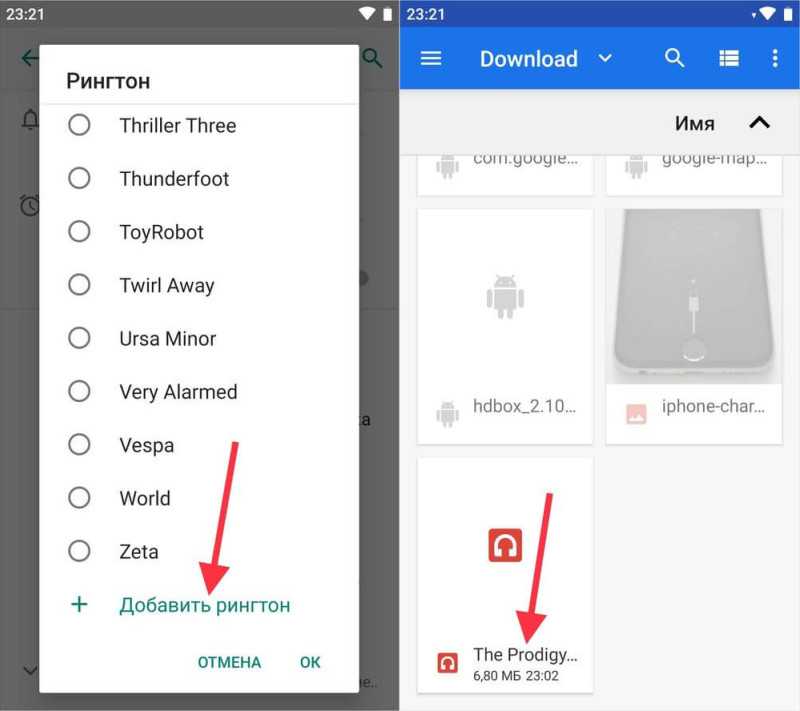 - Перейти в папку, куда была загружена музыкальная композиция, и нажать на нужную. На этом этапе рингтон будет выбран.