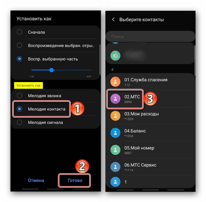 Обратите внимание, что установка индивидуального рингтона доступна только на контакты, расположенные в памяти телефона.