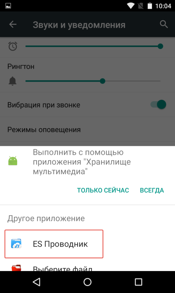 Затем откройте «Настройки» → «Звуки и уведомления» → «Рингтон». Теперь выберите не «Хранилище мультимедиа», а файловый менеджер (в моем случае Solid Explorer) и нажмите «Только сейчас».