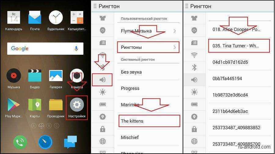 Для установки мелодии через настройки телефона выполняются следующие действия: