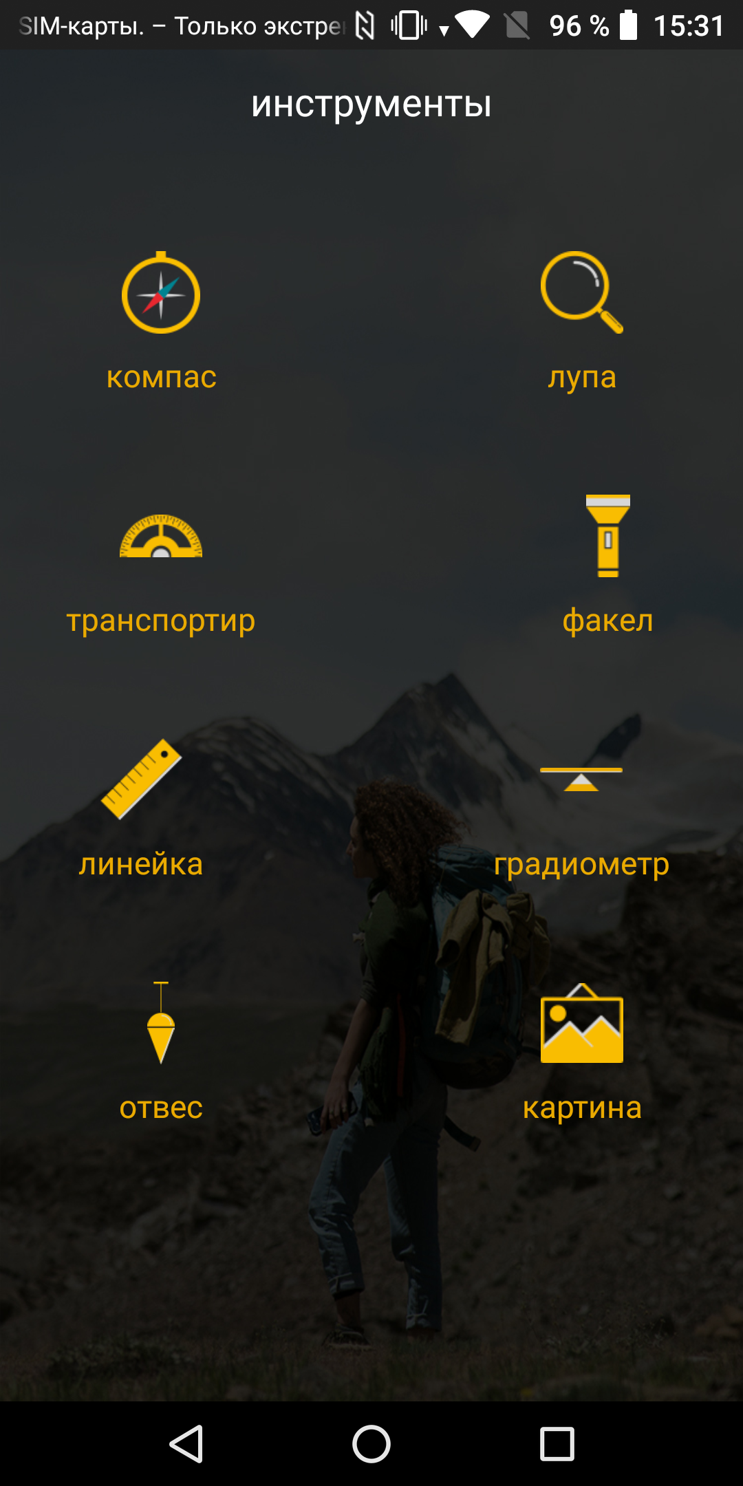 Единственное фирменное приложение AGM (только его, кстати, можно удалить стандартными средствами) не переведено даже на английский, оно всё на китайском. Его главный экран украшает компас и шесть кнопок, вызывающих разные функции. AGM полагает, что они будут полезны путешественникам, но я нахожу их гораздо более интересными для маляров, плотников и иных отделочно-строительных профессий. Пользователю предлагаются уровень, транспортир (выводится поверх камеры), отвес (также на фоне камеры), лупа (шикарная по качеству; приближение до 90x – но это по площади, линейные размеры увеличиваются в ~9,5 раз), вертикаль/горизонталь и линейка. Последняя является темой для отдельного разговора.