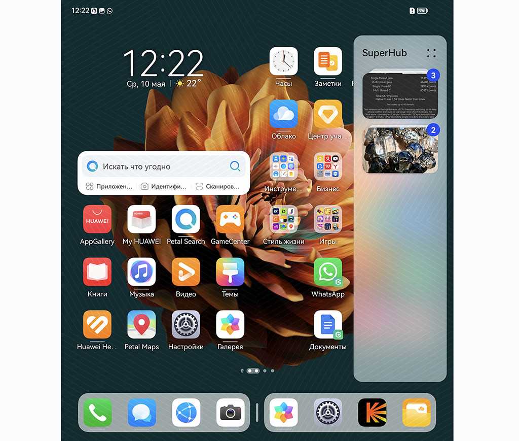 Большой дисплей Mate X3 позволяет открыть сразу 2 приложения рядом друг с другом, а некоторые из них можно помещать в плавающие окна. Содержимое экрана также можно транслировать на планшет или ноутбук через Super Device, которая позволяет быстро передавать изображения, текст и другие файлы.