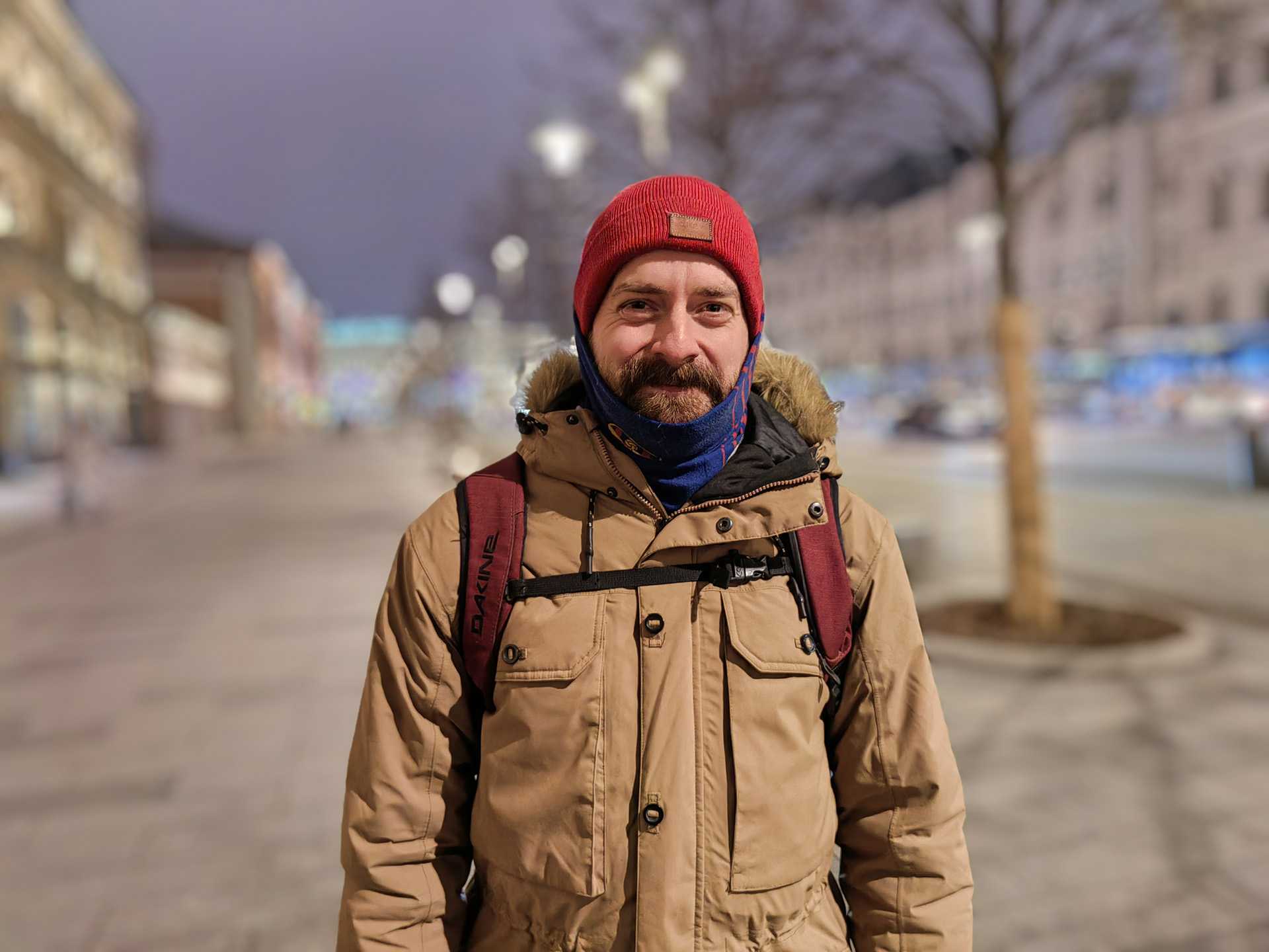 На мой вкус, слишком сильное размытие заднего фона. Хотелось бы чуть слабее, а то человек выглядит слишком неестественно вырванным.