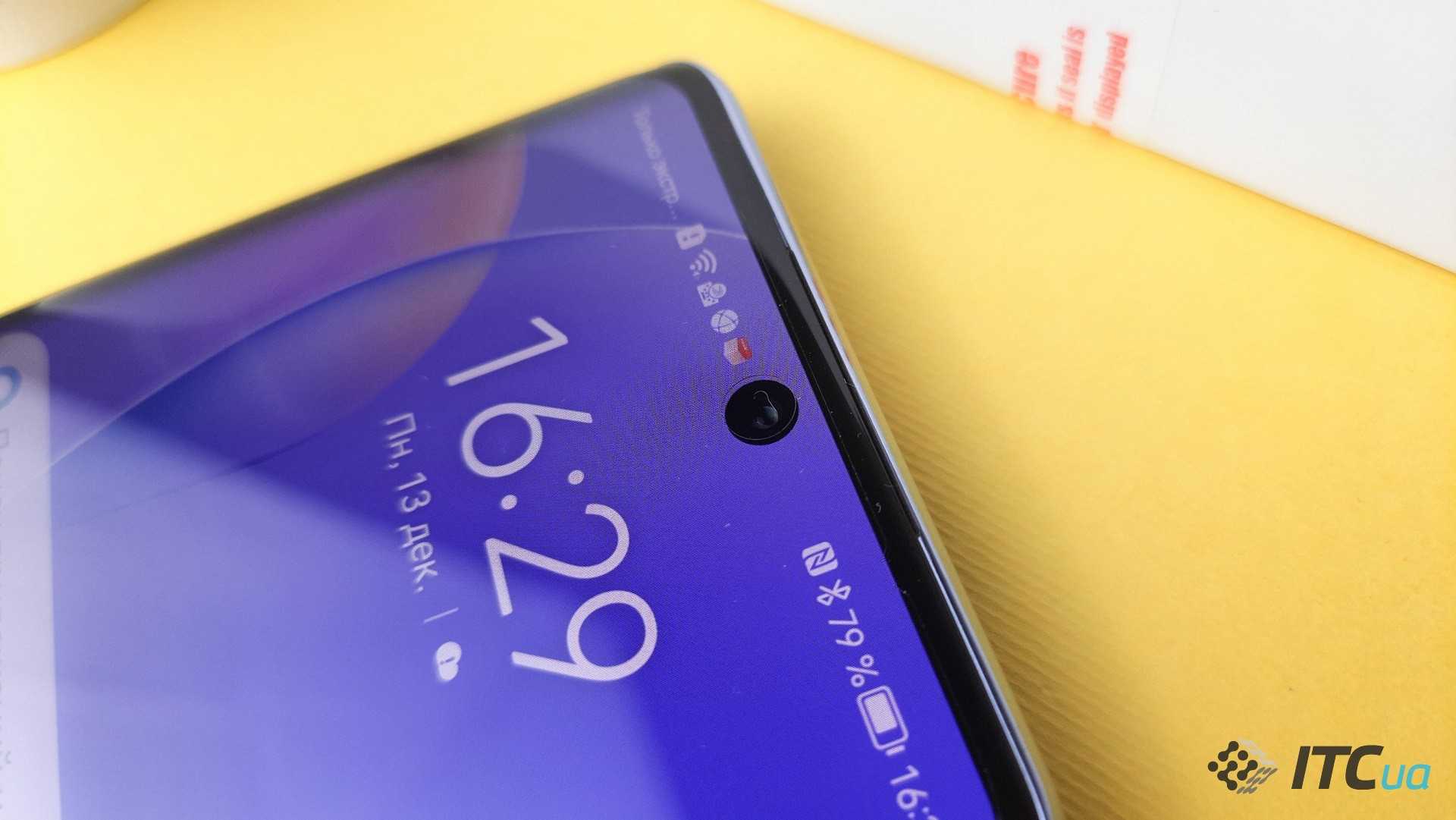 Фронтальную камеру вставили в круглый вырез посередине и вверху дисплея. Внизу — подэкранный сканер отпечатков пальцев. Он быстро и четко реагирует на касания, поэтому разблокировка проходит почти молниеносно. А вот влажные или жирные пальцы дактилоскопический датчик не распознает.