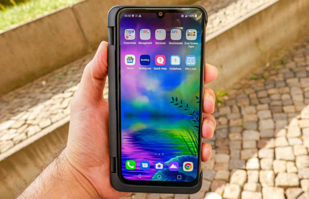 Я рад, что у меня была возможность протестировать накопитель Galaxy Fold от Samsung, прежде чем рассматривать LG G8X ThinQ с двумя экранами. Философия между этими двумя устройствами не может быть более четкой. Galaxy Fold — это складной планшет с гибким экраном, маскирующийся под смартфон. Это буквально 7,3-дюймовый экран в карманном 4,6-дюймовом форм-факторе. ThinQ с двойным экраном — это два полноразмерных 6,4-дюймовых экрана смартфона, которые могут работать как одна команда, но не как один гигантский экран.