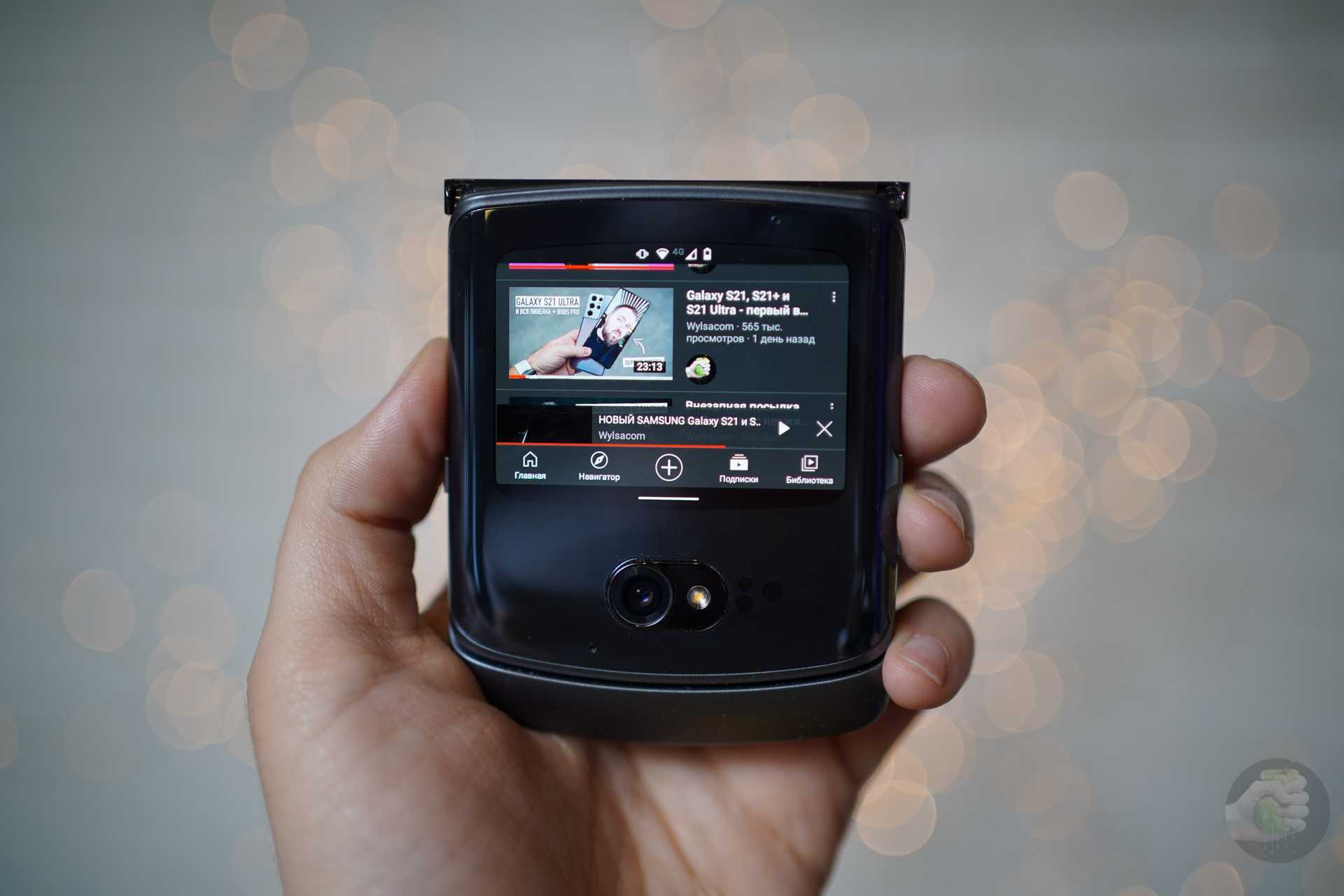 Razr имеет дизайн раскладушки, который позволяет телефону быть меньше, чем ваш средний смартфон в сложенном состоянии, но при этом имеет 6,2-дюймовый основной дисплей в развернутом виде, который по размеру может конкурировать с топовыми флагманами.