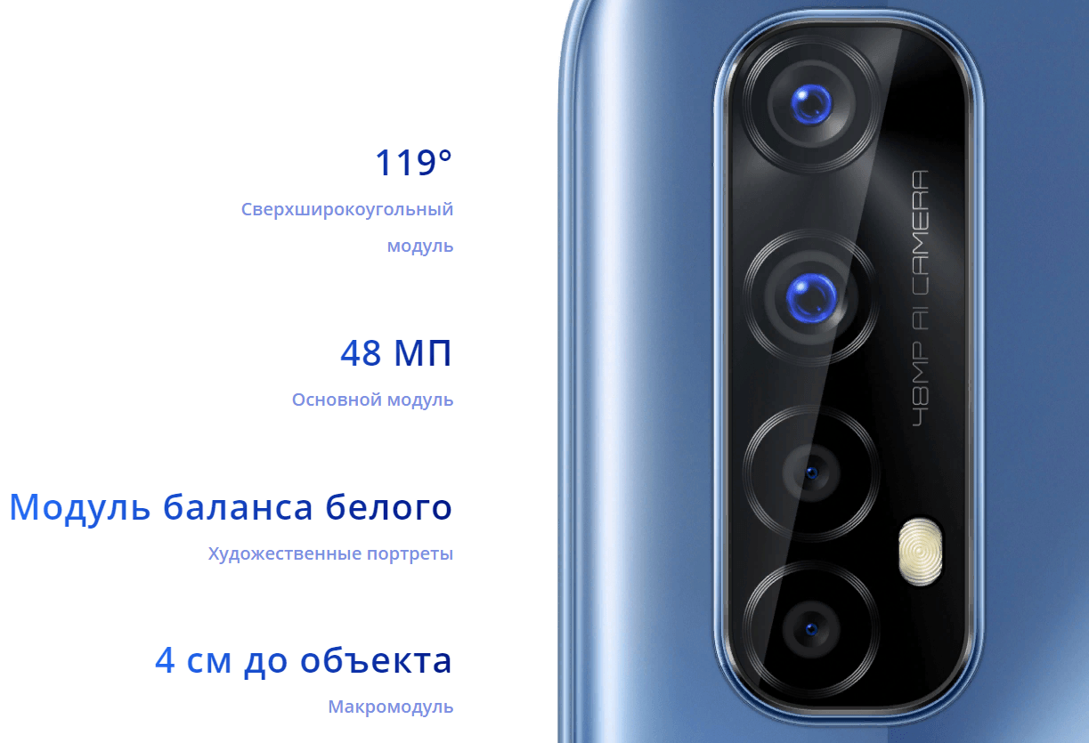 Основной блок realme 7 Pro состоит из 4 модулей: