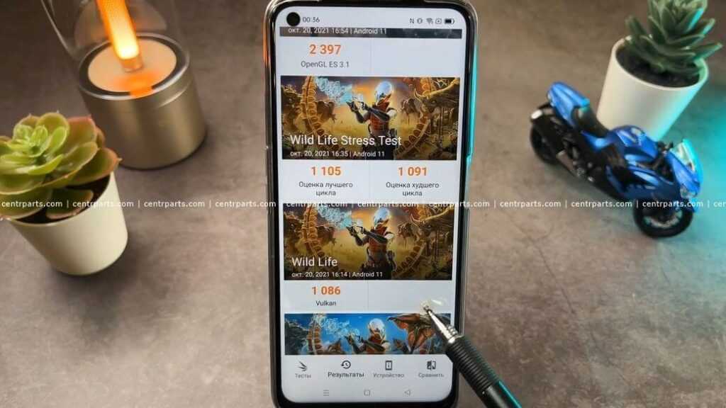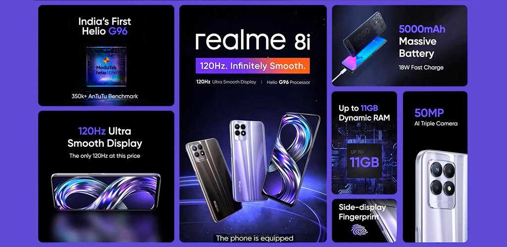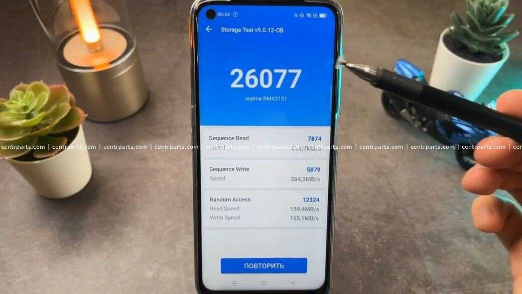 Оперативной памяти LPDDR4X может быть 4 или 6 Гб, а объём внутреннего хранилища UFS 2.1 от 64 до 128 Гб. Тесты производительности говорят нам, что в бюджетном сегменте Realme 8i является одним из самых мощных смартфонов.