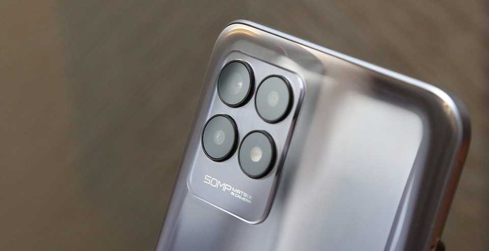 Слева вверху — традиционная для последних моделей realme «плита с конфорками». За плоскость выпирает как сама площадка, на которой размещены «конфорки», так и объективы относительно поверхности площадки. Впрочем, это не особо мешает: если положить смартфон на стол и набирать сообщения, раскачиваться он не будет.