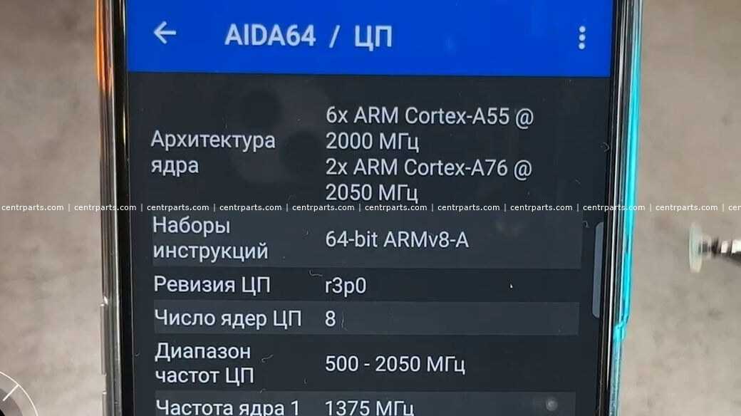 У чипсета восемь ядер: два производительных Cortex-A76 с тактовой частотой 2,05 ГГц и шесть энергоэффективных Cortex-A55 (2,0 ГГц). Графику обрабатывает ускоритель ARM Mali-G57 –поддерживающий частоту обновления дисплея 120 Гц. Но, его мощности недостаточно, чтобы обеспечивать 120 fps в играх.