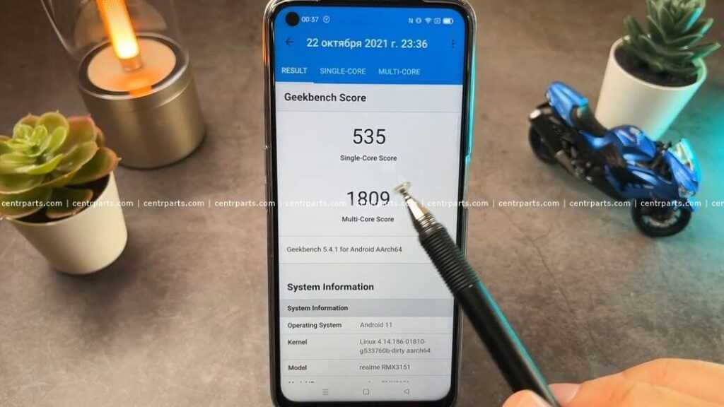 В GeekBench 5 realme 8i набирает 535 баллов в одноядерном тесте и 1864 в многоядерном. Не повод для гордости, но не так уж и плохо.