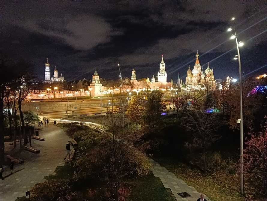 На удивление хорошо работает ночной режим. Его можно и нужно использовать — он позволяет избавиться от засветки фонарей и фар, а также от шумов. Просто сравните два снимка, сделанные в разных режимах: первый в обычном режиме, второй — в ночном.