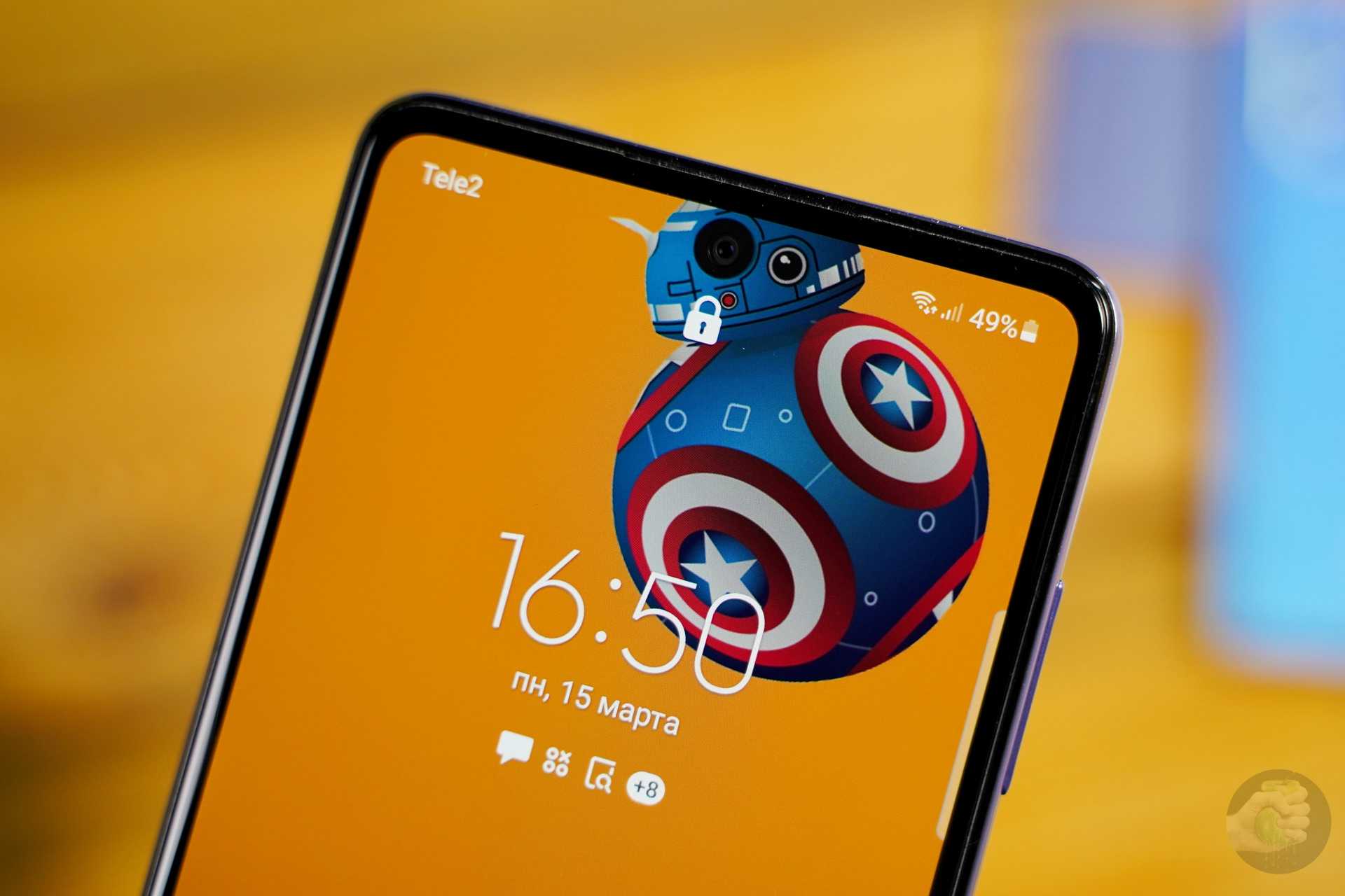 Дисплей имеет диагональ 6,7 дюймов, высокое разрешение 1080×2400 пикс. и плотность 394 ppi. Благодаря соотношению сторон 20:9 смартфон не кажется огромным — хотя это, конечно, зависит от взглядов пользователя