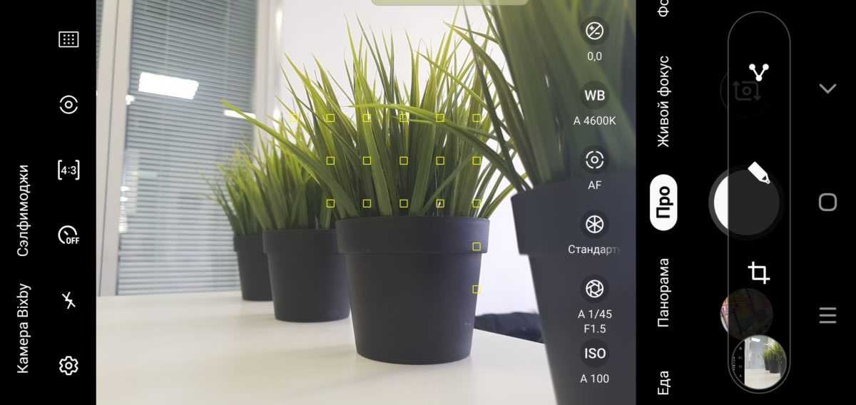 Фронтальная камера у Galaxy S10 одна, но и она позволяет делать размытие фона. Разрешение этого модуля 10 Мпикс, угол обзора 80° и светосила ƒ/1.9. Качество снимков хорошее. Есть два режима, один из которых предполагает нахождение нескольких человек в кадре, а второй больше рассчитан на одного. Снимки получаются хорошие даже в сложных условиях искусственного освещения.