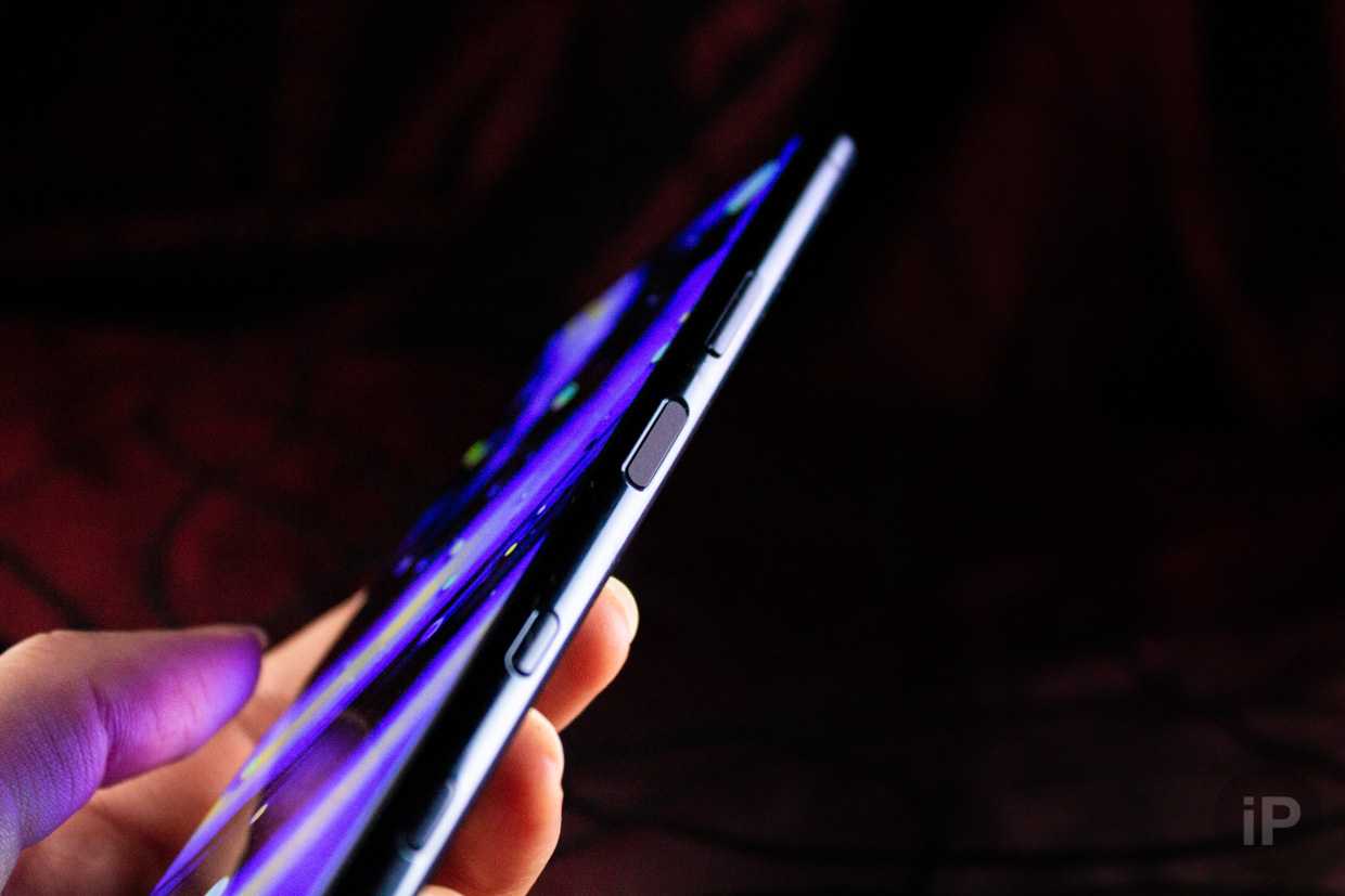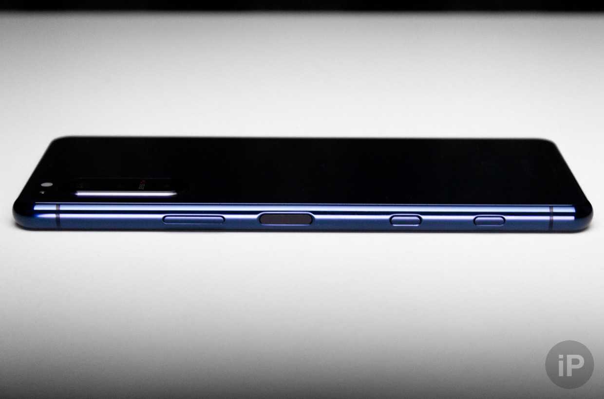 По бокам рамки не слишком широкие, но большое пространство под дисплеем далеко не идеальное. На наклонном краю телефона достаточно места для большого пальца, поэтому в такой щедрости нет необходимости.