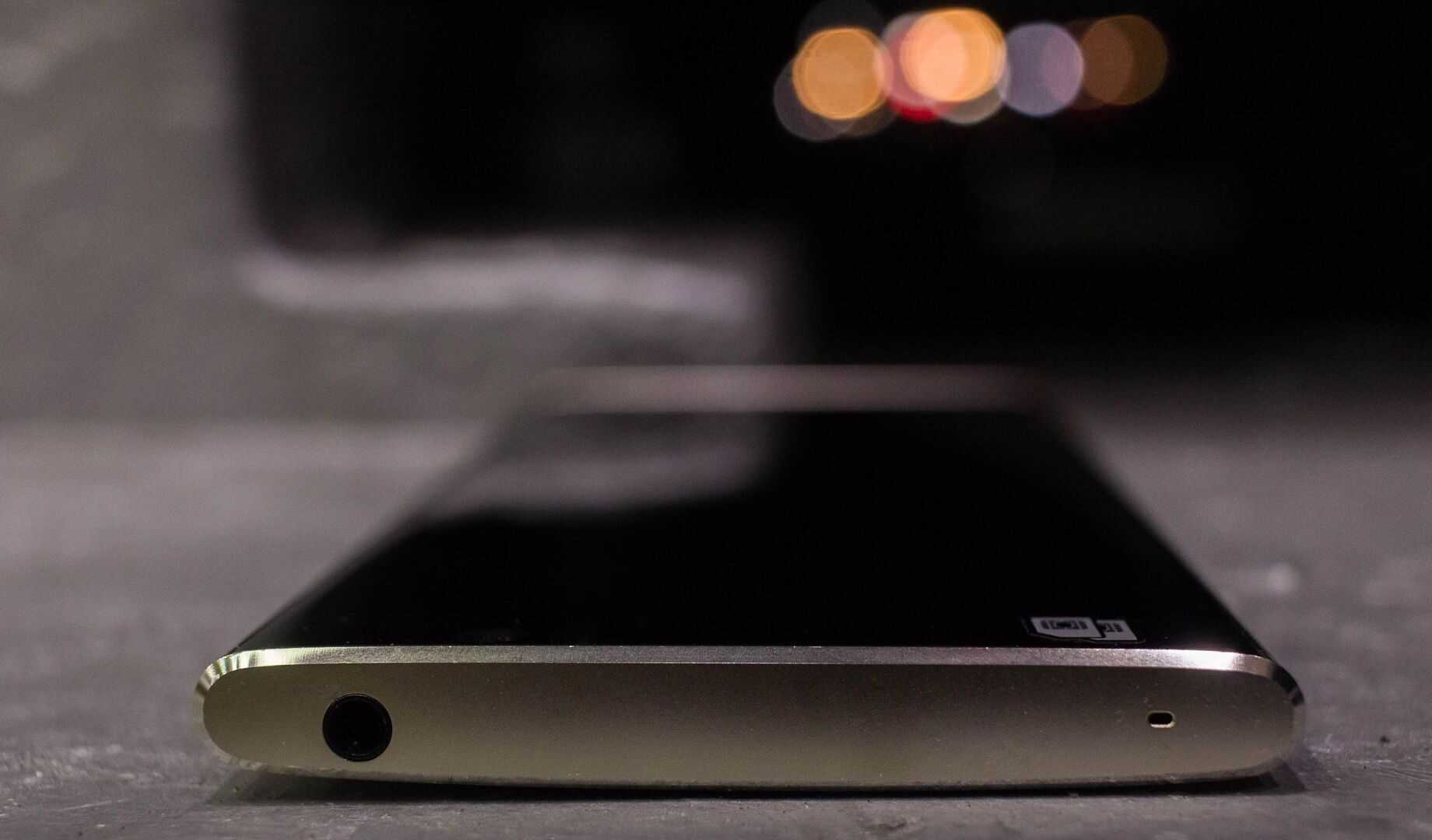 Наушники можно подключить к смартфону через разъем на его верхнем торце. Здесь же расположено еще одно отверстие под дополнительный микрофон системы шумоподавления.